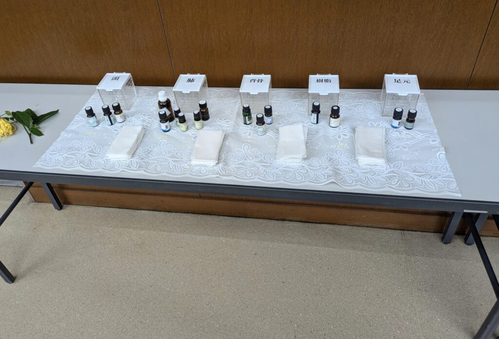 2025年10月4日 / 最終更新日 : 2025年10月4日 mint ほっとひと息 上野学園様で第二弾 本日は上野学園様のご依頼で「心と体を守るアロマテラピー」のセミナーを行いました。 昨年は「アロマテラピーとは」でしたが その続編となります。 精油を成分やお好みで選ぶのではなく、ご自身の体のどこに働きかけたいかで選んで頂きました。 「ストレスにはどこの部位が良いですか」のご質問には「頭です」とお応えし、花の中のお好きな香りを選んで頂きました。 香りと記憶が結びついているご経験をお話して下さった方もおられました。 皆様にとってアロマテラピーが心と体のお守りになって頂けたら嬉しいです。